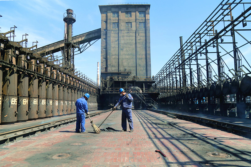 日前,宏興股份公司焦化廠二煉焦作業(yè)區(qū)在焦爐不停產狀態(tài)下完成4號焦爐爐頂翻修。項目組嚴格落實安全責任和措施,實行安全監(jiān)護,確保了翻修施工安全。圖為該廠職工在翻修后的4號焦爐爐頂進行余煤清理作業(yè)。張志方 攝